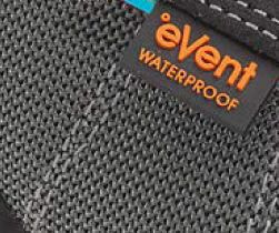 eVent ® ファブリックは PTFE ラミネート技術を採用しており、非常に通気性に優れ、汗を素早く外に蒸発させ、足の周りの乾燥した環境を維持します。